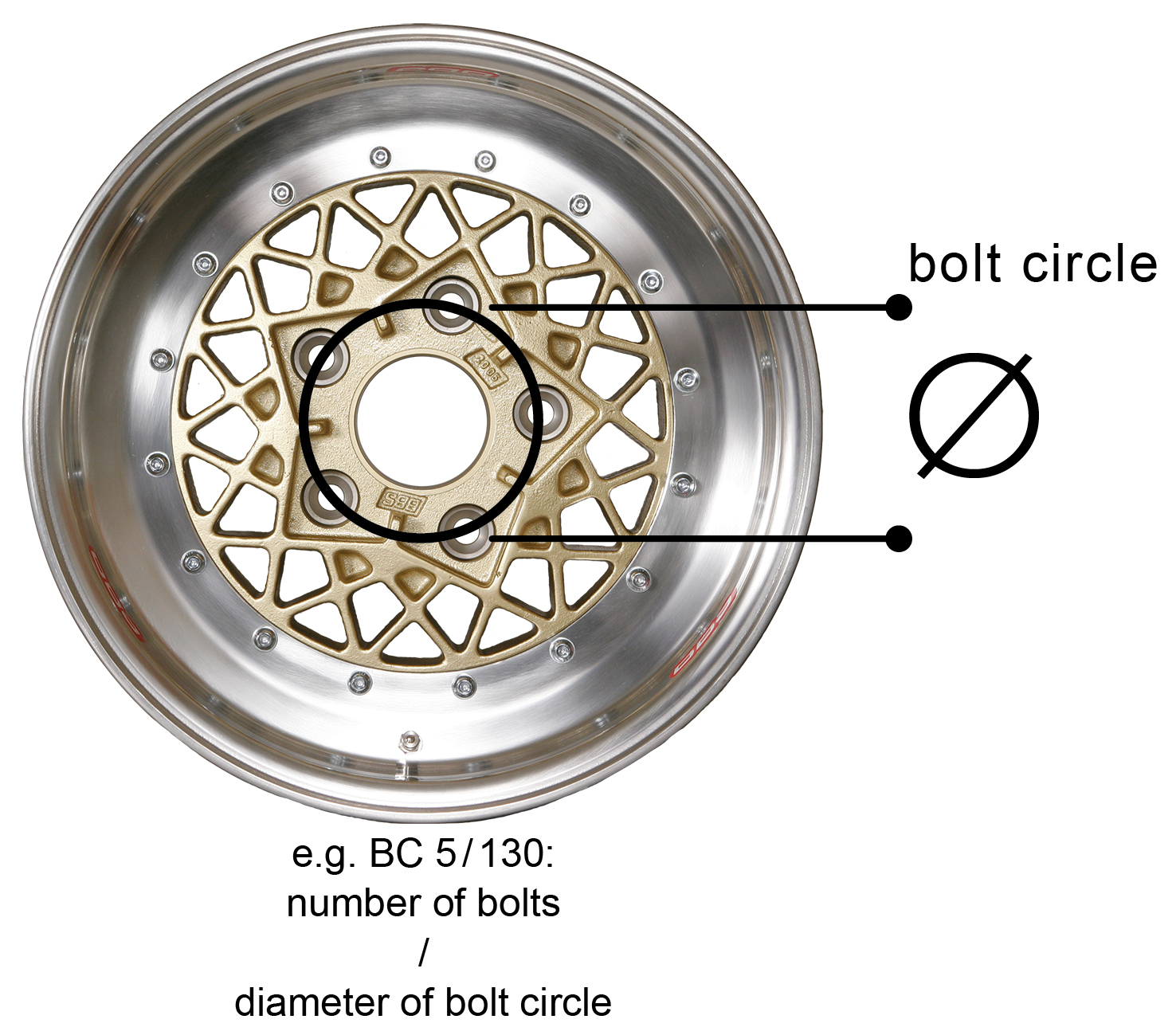 Usually BBS racing wheels were fixed with BBS flathead nuts, but wheel centres also could be prepared for fixing with round- or taperhead bolts or nuts